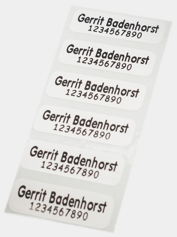 Continue ShoppingPrinted in black on a white label with rounded corners. These water-resistant adhesive labels are made from a high quality polypropylene which means that they are durable and waterproof. They are safe to use in the dishwasher and microwave oven. They were especially designed with small "difficult-to-label" stuff in mind.